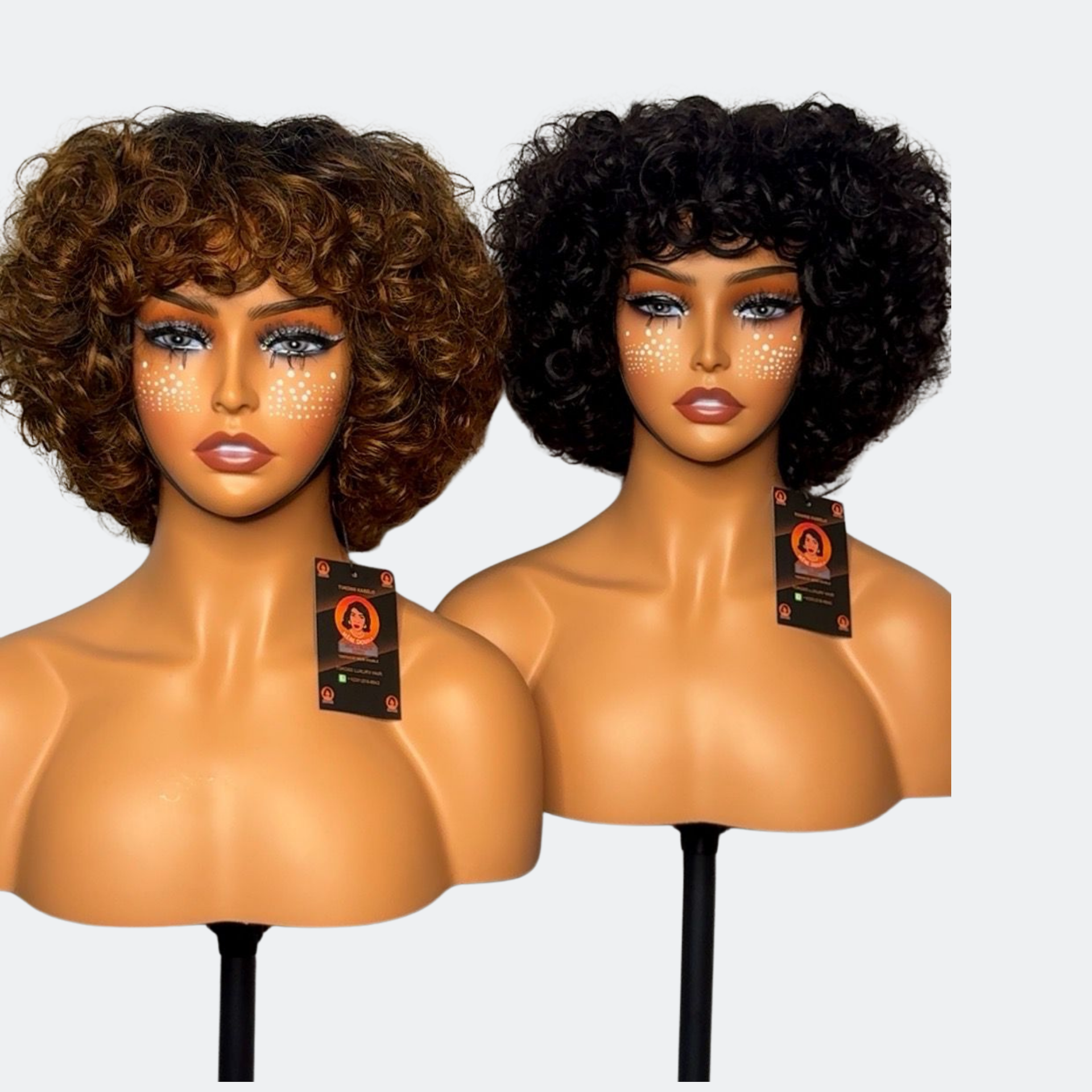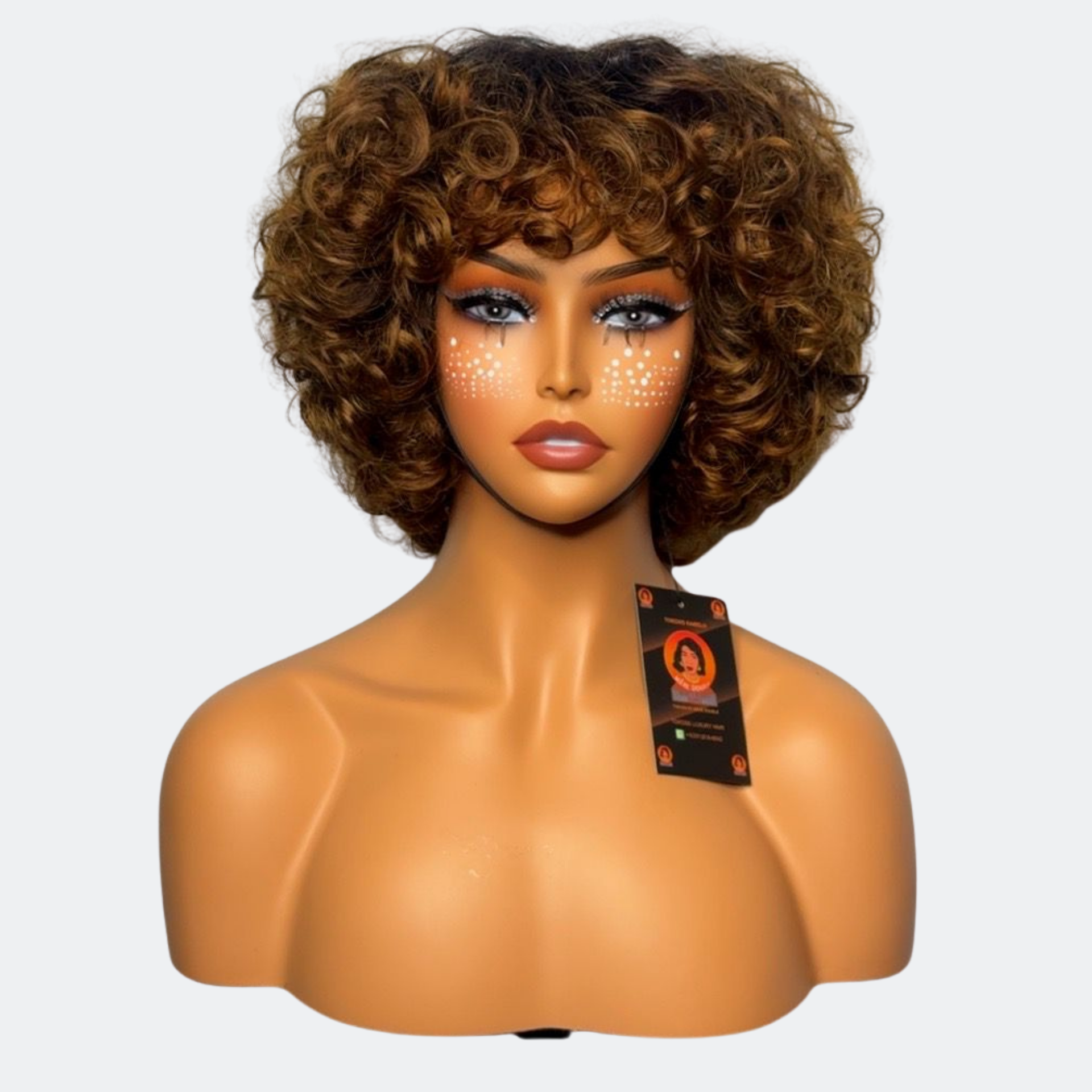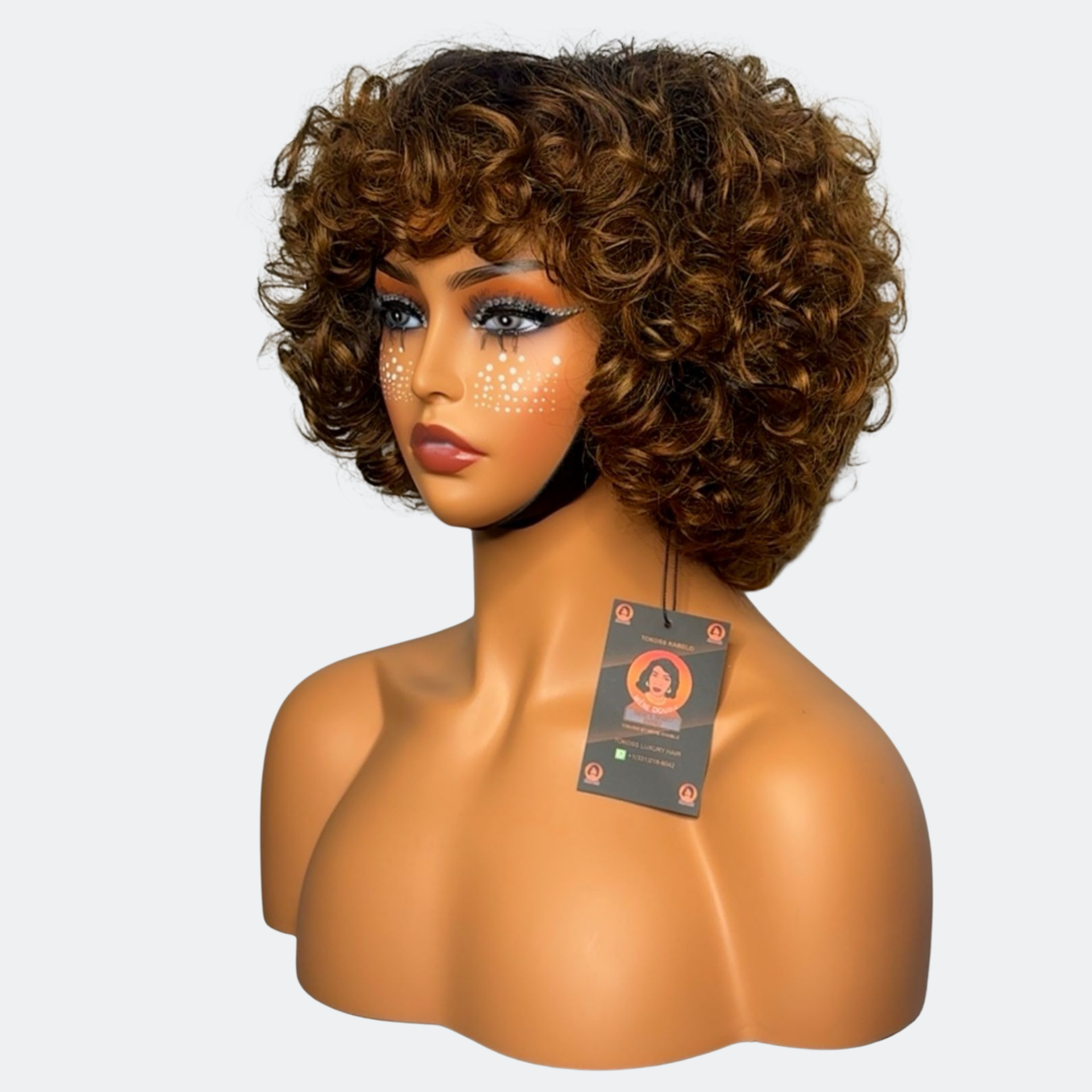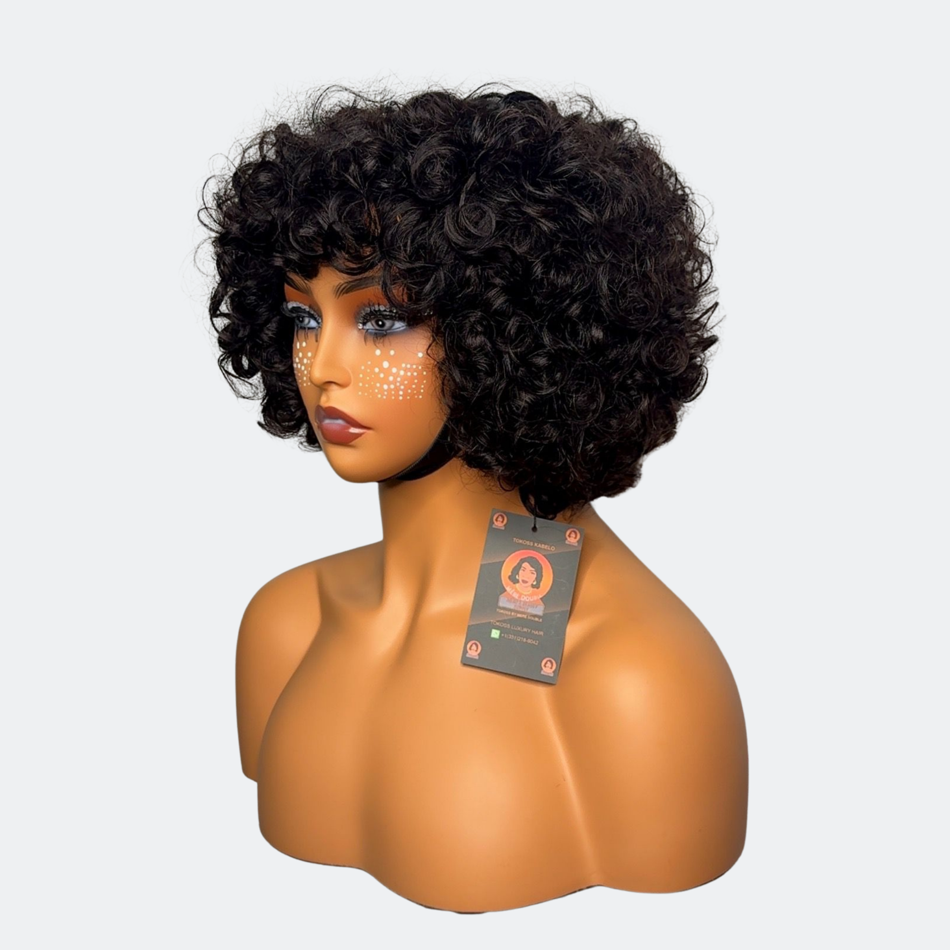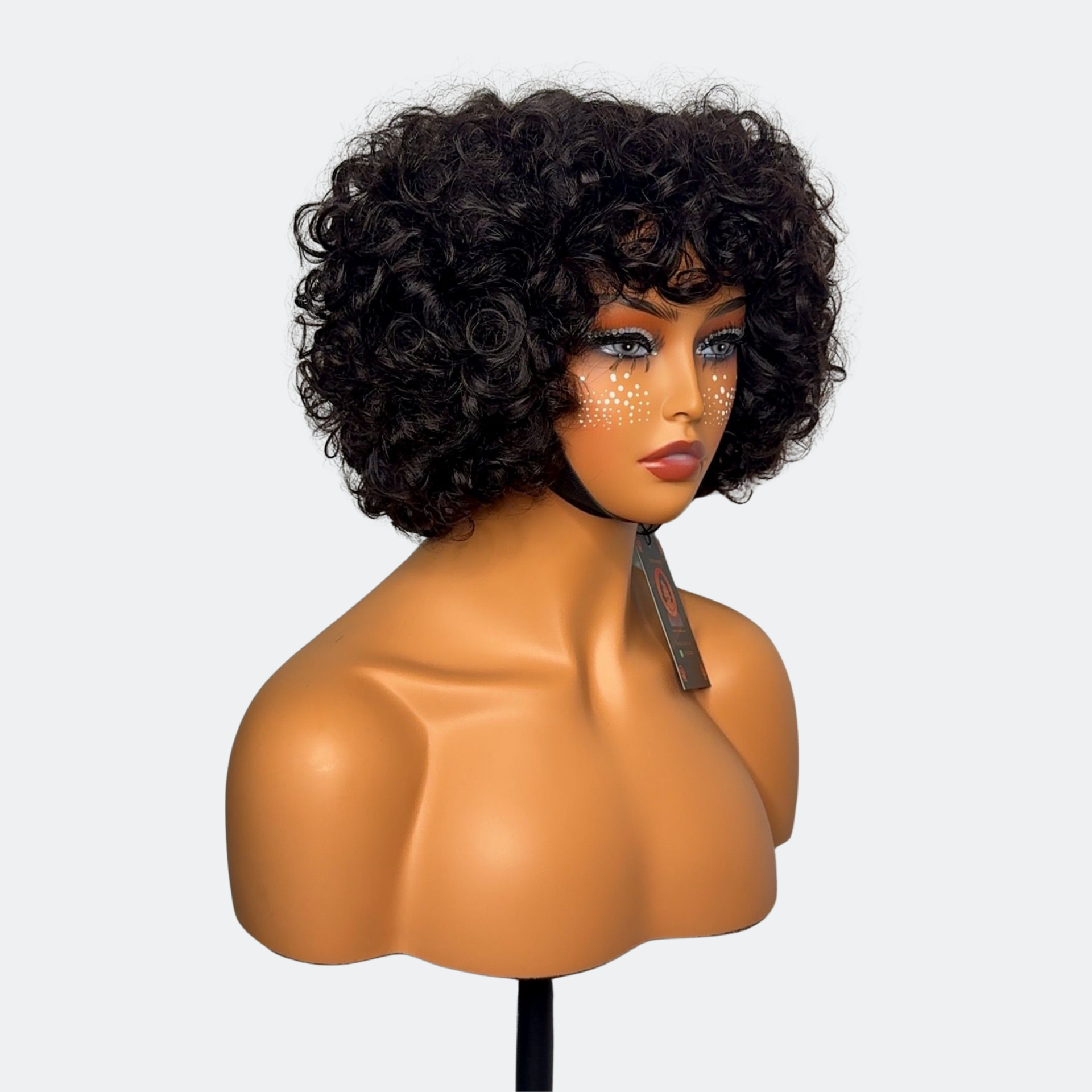 Finger Curly Bouncy Wave Glueless Human Hair Wig – 6 Inches, 300% Density